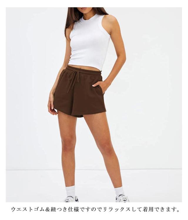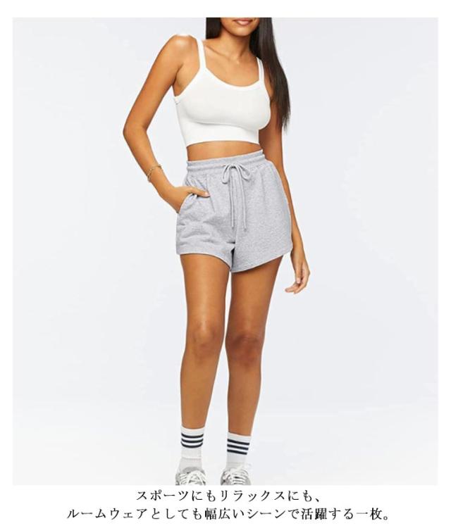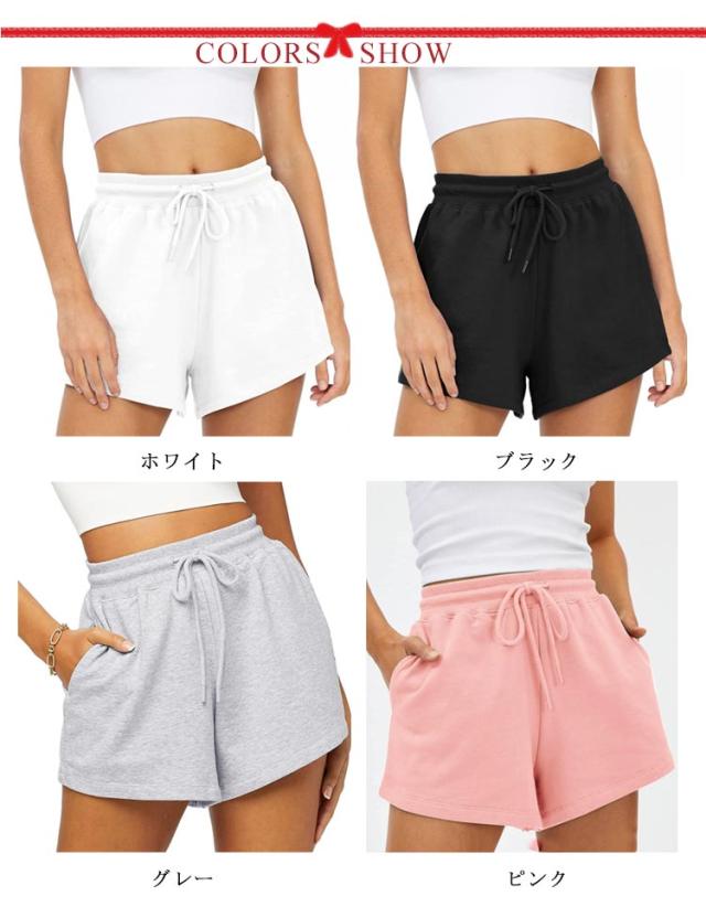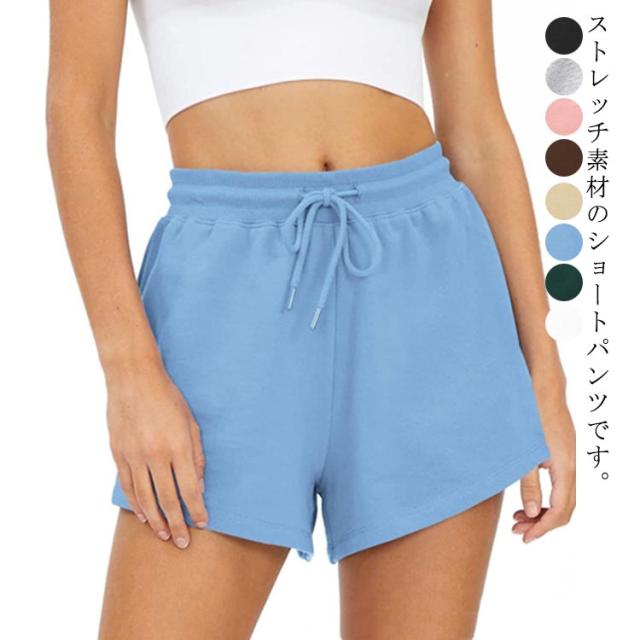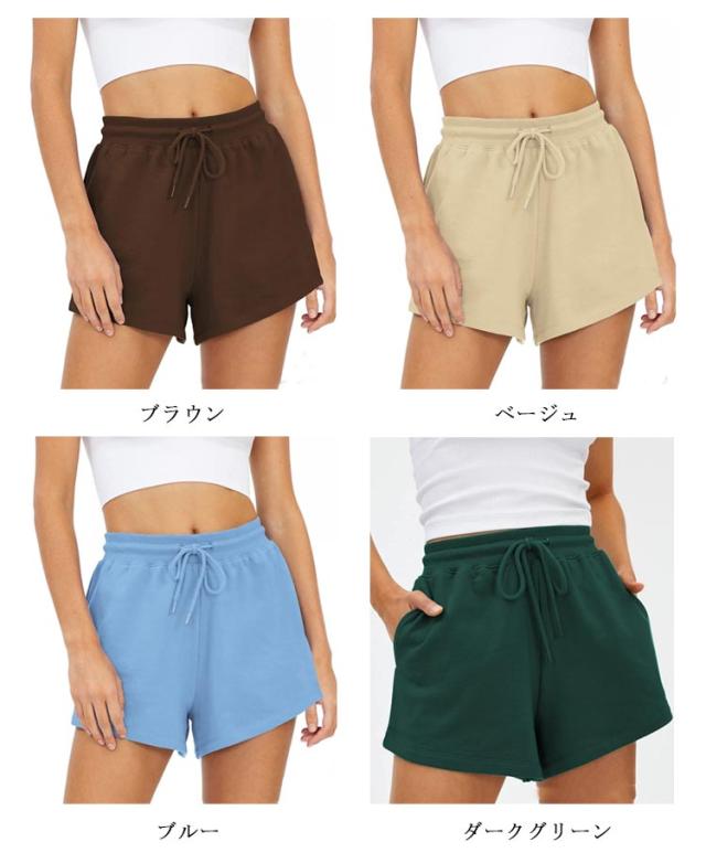 無地 スポーツウェア ショート丈 レディース ボトムス 伸縮性 ウエストゴム ショートパンツ カジュアル ヨガ ストレッチ 弾力 スポーティ スポーツ ルームウェア 部屋着 スポーティ ダンス ランニング 送料無料