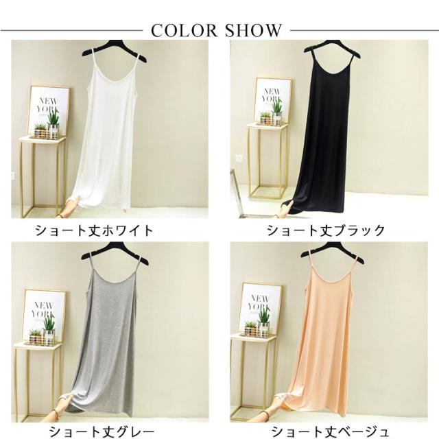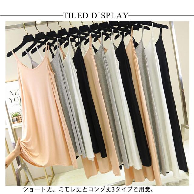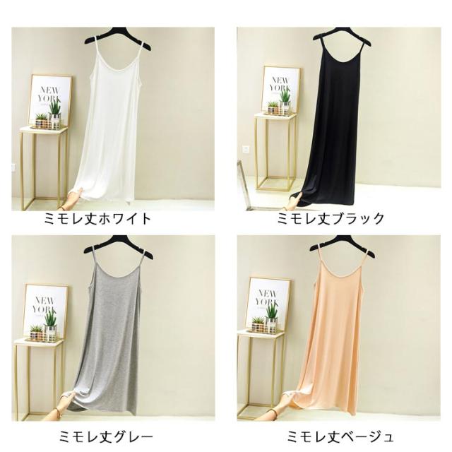 透け防止 ブルー 3丈さ選べる インナーワンピース 下着 ワンピース キャミワンピ ショート丈 ミモレ丈 ロング丈 ペチコート インナー 重ね着 レイヤード 無地 インナーキャミ レディース 天然素材 モダール ストレッチ シンプル ホワイト ブラック グレー 送料無料