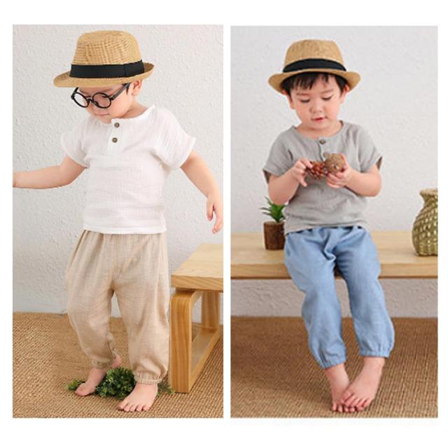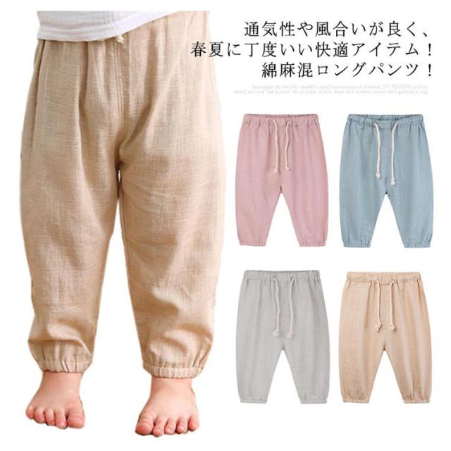 【送料無料】キッズ ベビー服 夏 80 2枚セット ゆったり 薄手 韓国 長ズボン 男の子 女の子 虫除け 綿麻混 虫よけ 子ども服 ロングパンツ 春 秋 リネンパンツ 90 100 110 120 130 男の子