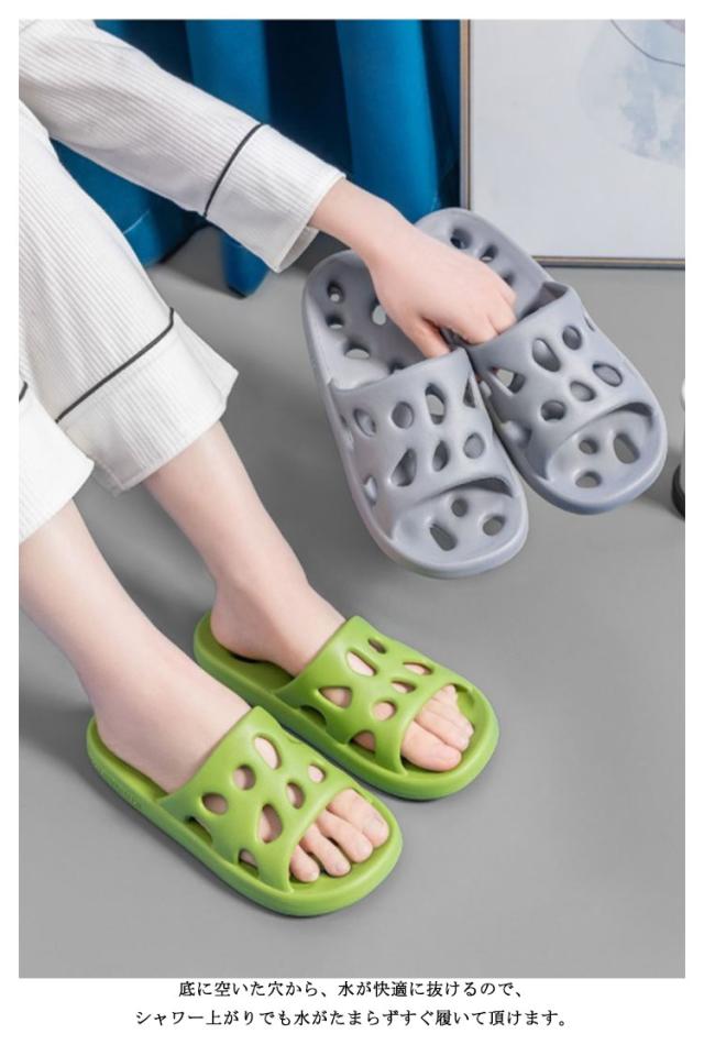 スリッパ 水がたまらない シャワーサンダル サンダル 室内 無地 速乾 厚底 ペア 夫婦 軽量 22.5-27.5cm レディース メンズ アウトドア 滑り止め 底穴あき シンプル 父の日 母の日 EVA ルームシューズ 夏用