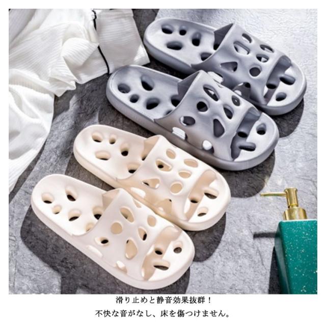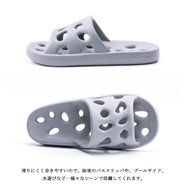 | 水がたまらない!速乾性に優れたシャワーサンダル。 底に空いた穴から、水が快適に抜けるので、シャワー上がりでも水がたまらずすぐ履いて頂けます。 滑りにくく歩きやすいので、浴室のバススリッパや、プールサイド、水遊びなど…様々なシーンで活躍してくれます。 厚底のEVA素材が適度な弾力とマシュマロのようなふんわり感を実現。 滑り止めと静音効果抜群!不快な音がなし、床を傷つけません。 とても柔らかくて軽量で履き心地が良いです。 | |