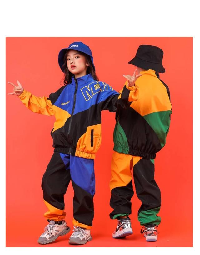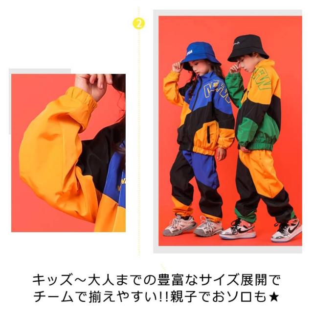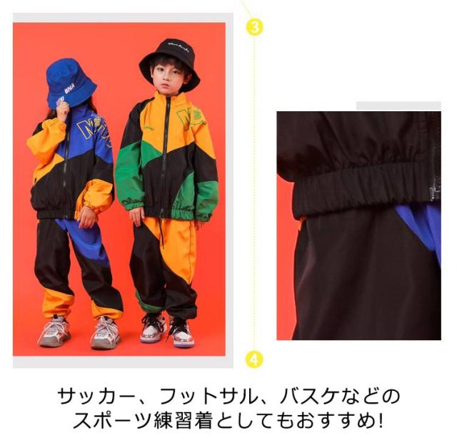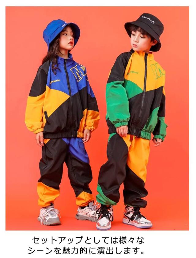 キッズダンス衣装 ウィンドブレーカー ジャージ 上下 セットアップ ヒップホップ ダンス衣装 チーム衣装 練習着 ゆったり ロングパンツ キッズダンス 子供服 キッズ K-POP 蛍光 グリーン ブルー 韓国風 ストリート 上下 演出服