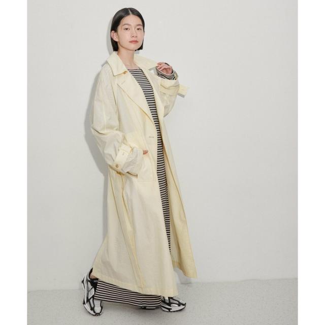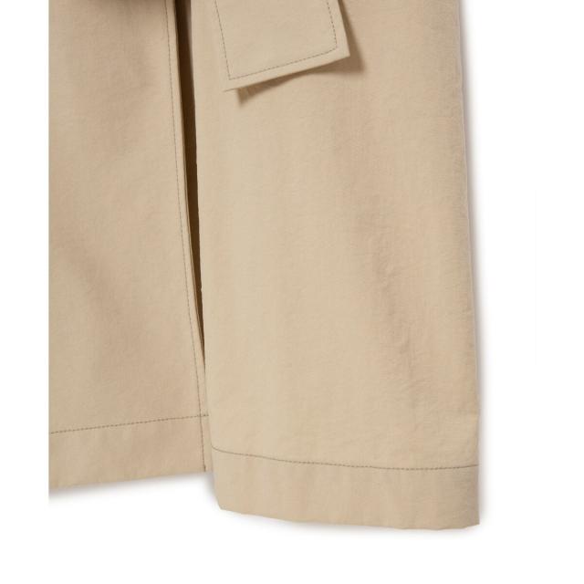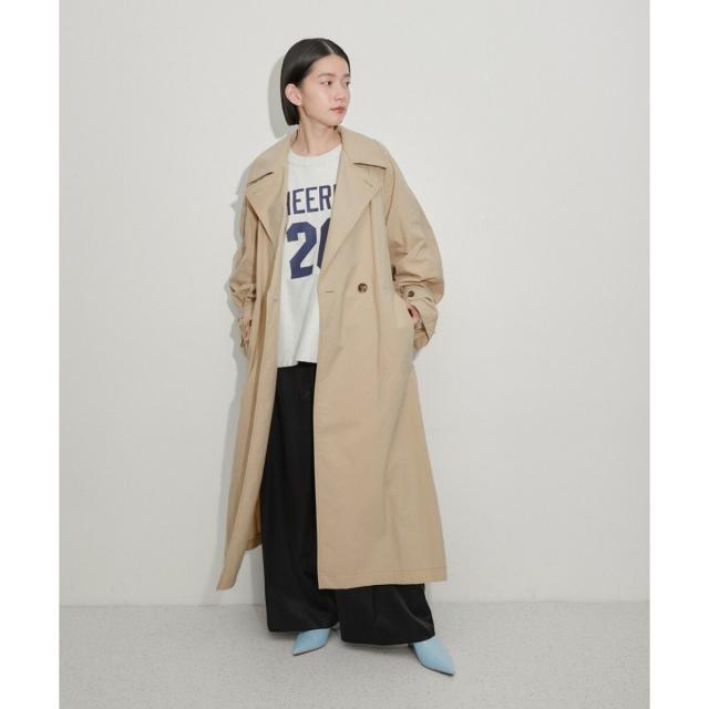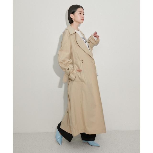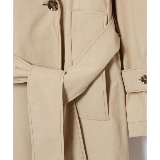 太目な袖の袖口ベルトは、釦位置を変える事で袖口の大きさをアジャストできる仕様。バサッと着たり、ウエストベルトでぎゅっと締めて着たりもできる、春におすすめのマニッシュなトレンチコート。また、撥水加工・防汚加工を施しているため、長い着丈のコートでも気兼ねなく着用が可能。