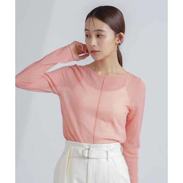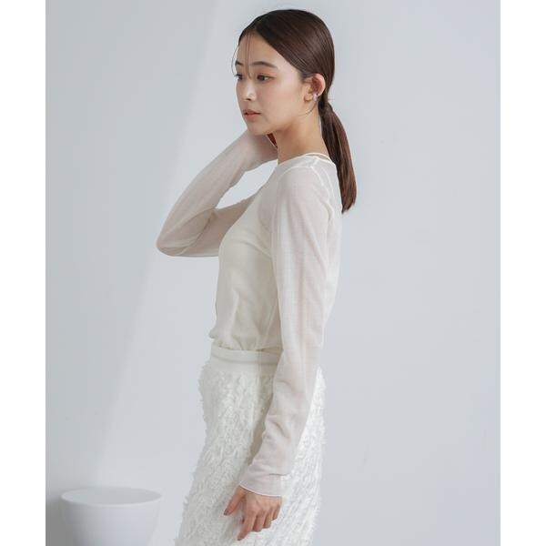 旬なレイヤードスタイルが叶うシアーカットソー。毎シーズン人気の型のネックラインをボートネックに変更しアップデートしました。レイヤードしやすい絶妙なサイズと重ねた時にしっかりポイントになるような長めの着丈がポイント。女性らしさが引き立つ程よい透け感で、気分やシーンに合わせて様々なコーディネートが楽しめそう!