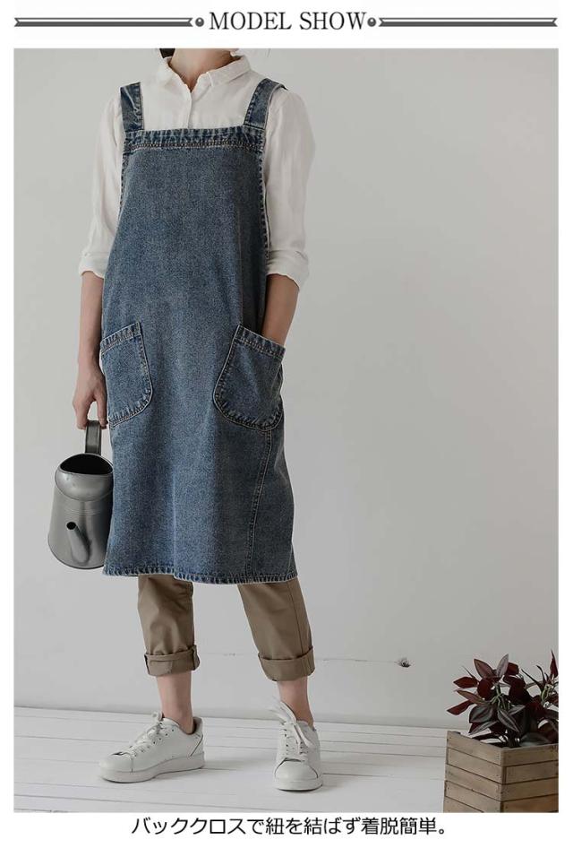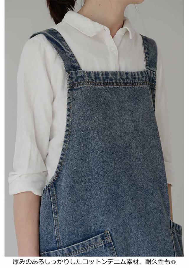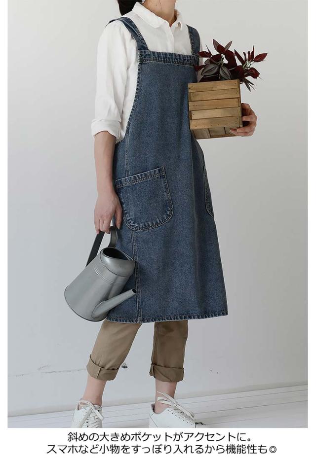 | さっとかぶるだけ♪楽チンでおしゃれなデニムエプロン。 バッククロスで紐を結ばず着脱簡単。 太めの肩紐で首や肩に負担がかからず、長時間つけても疲れない。 斜めの大きめポケットがアクセントに。スマホなど小物をすっぽり入れるから機能性も◎ 老若男女問わないおしゃれなデザイン、年齢性別問わず誰でも使えるデニムエプロン。 厚みのあるしっかりしたコットンデニム素材、耐久性も◎ | |