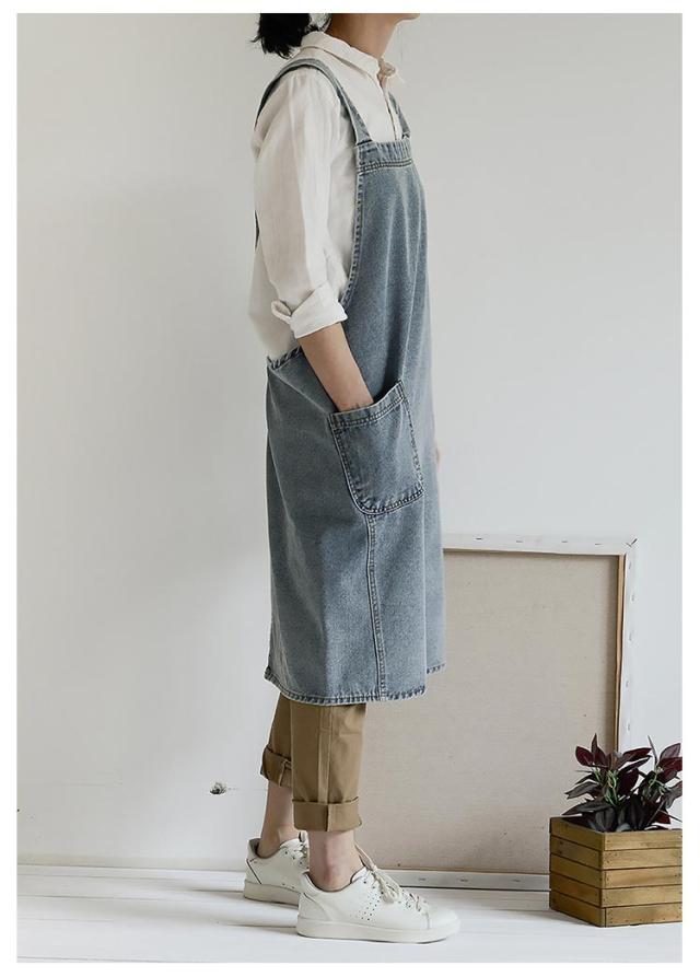 デニムエプロン おしゃれ 男女兼用 保育士 北欧 カフェ 綿 バッククロス 多機能ポケット オーバーオール風 送料無料 デニム エプロン ワークエプロン 作業エプロン かぶるだけ 脱着簡単 店員 飲食店 ガーデン