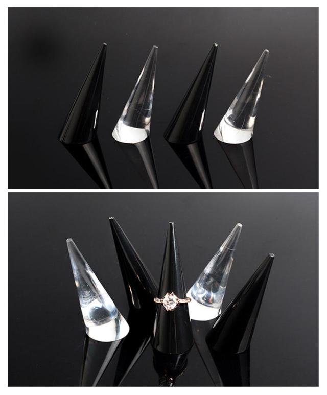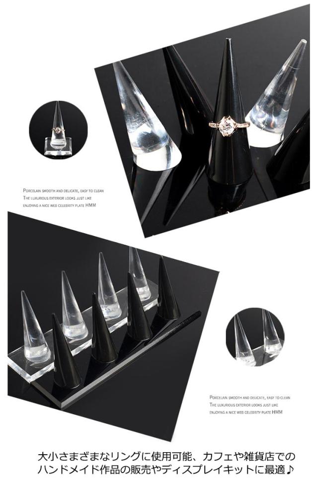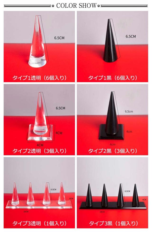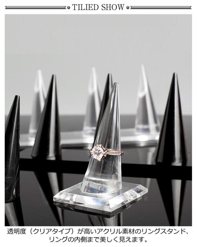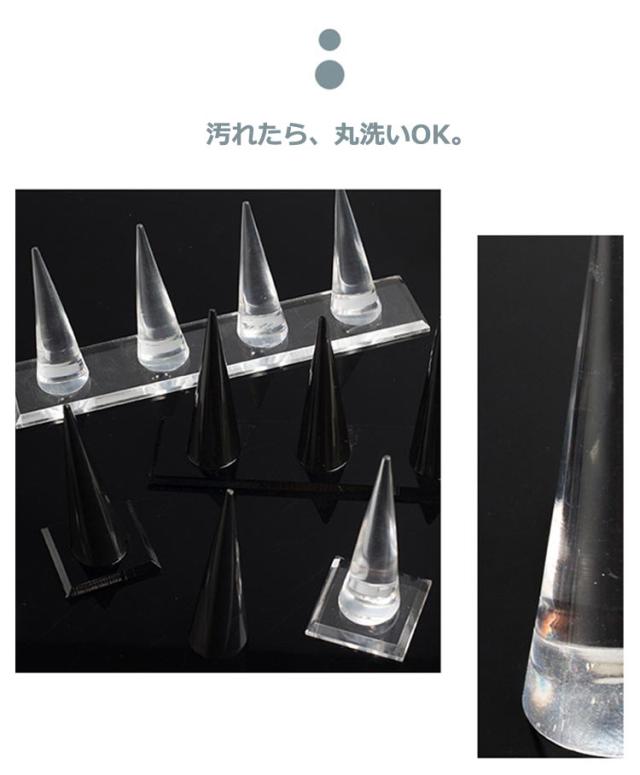 全3タイプ リングスタンド 円錐 指輪置き リングホルダー アクリル製 4連 空洞なし 指輪の保管 リング差し ディスプレイ クリア 透明 黒 ブラック ジュエリー用品 指輪ホルダー 指輪スタンド 結婚指輪 玄関 収納 家庭用 店舗 展示