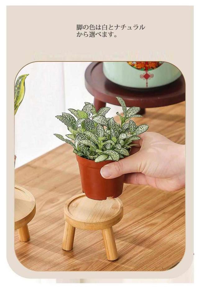 | 観葉植物を置けば華やかに部屋を彩れます。小さめの植物や サボテン などにぴったりです。 花を飾る、花瓶を飾る なんでも飾っちゃいましょう! 3号鉢 から 5号鉢 にちょうどいいサイズ のフラワースタンドです。 サボテン や 多肉植物にも丁度い大きさです。 丸型でかわいい! ナチュラルインテリア や 北欧系インテリアにぴったりな 天然木の風合い。 脚の色は白とナチュラルから選べます。 濡れても大丈夫 お掃除簡単 防水加工済み。 水やりで濡れたり汚れてしまったときもさっと拭くだけ お手入れカンタンです。 | |