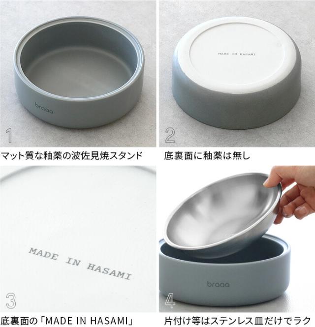 【特典付】braaa ブラー HASAMIペットボウルスタンド + ステンレスペットボウル ボウルスタンド セット 犬 日本製 陶器 食器台 フードボウル 燕三条 抗菌 清潔 食器 犬用品 おしゃれ 食器スタンド 超小型犬 小型犬 餌入れ petseries【送料無料】