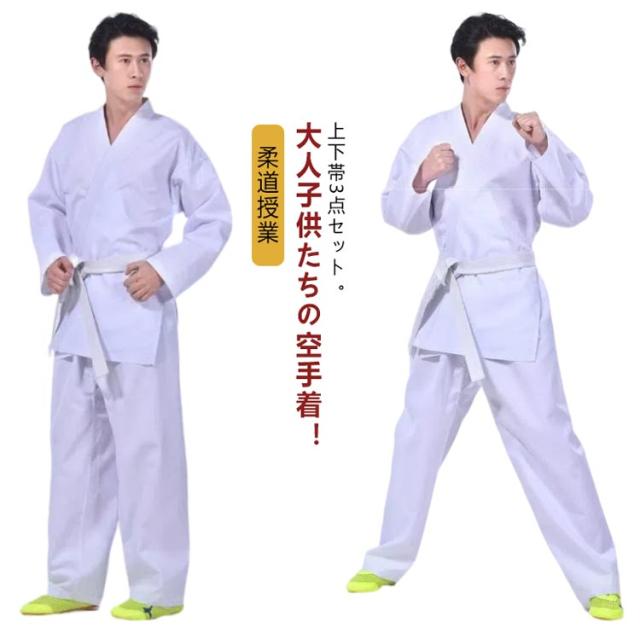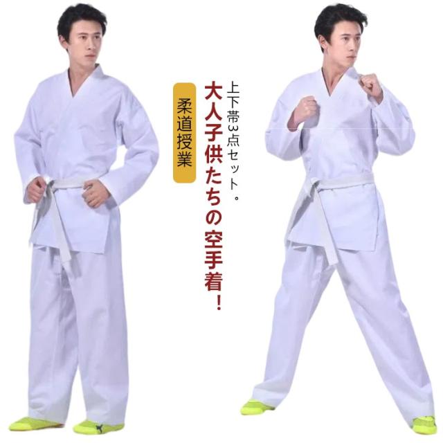 柔道着 空手衣 空手着 上下帯3点セット 道衣 パンツ 練習着 授業用 道着 道場 初心者 熟練者 白帯 中学生 高校生 体育授業 柔道授業 中学授業 高校授業 初心者セット 稽古 道衣 柔道着 授業用 大人 子供 キッズ ジュニア