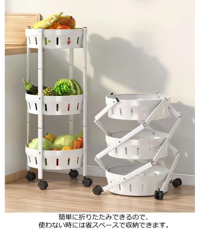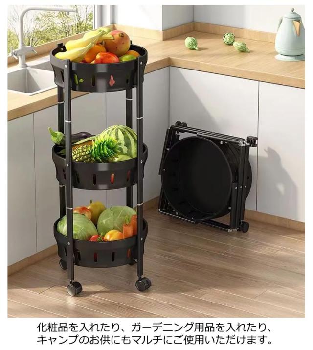 組立不要 キッチンワゴン キャスター 付き 折りたたみ キャスター付き ラック 3段ワゴン 可動式ワゴン 丸型 完成品 キッチン カート ガーデニング おしゃれ 洗面所 インテリア 白 黒 韓国