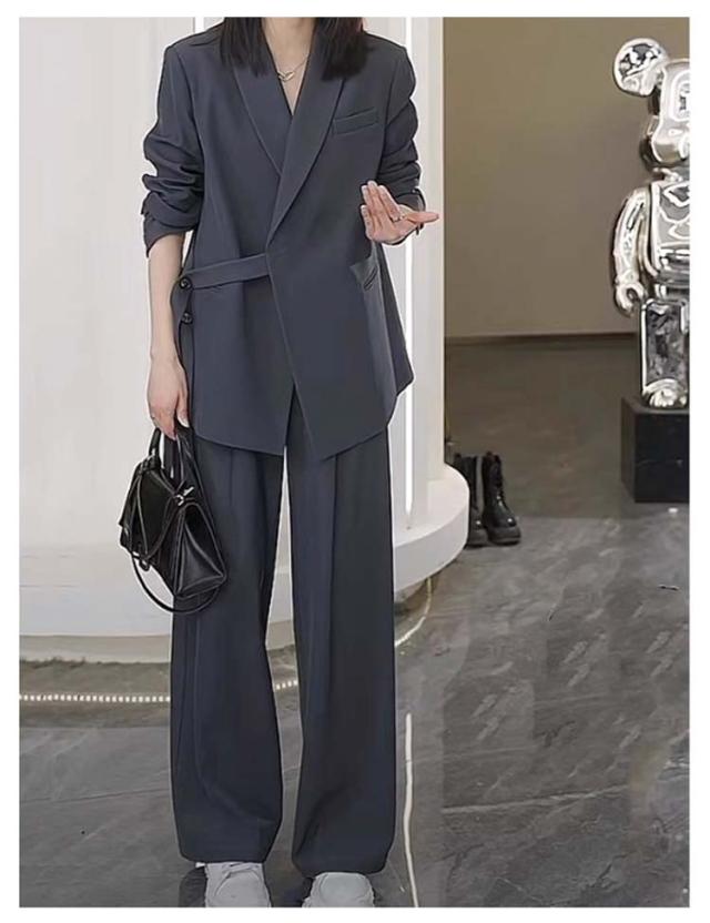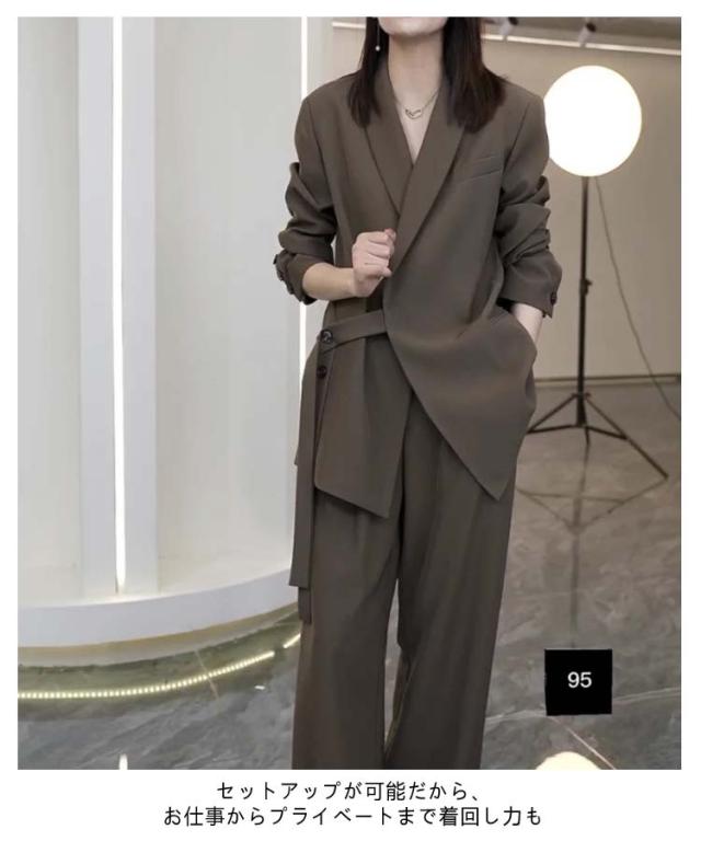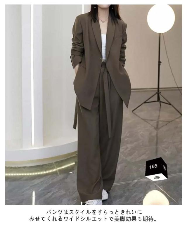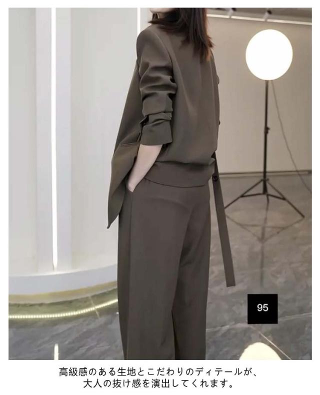 | ウエストベルトがアクセントになっており、洗練されたスタイルを演出するカジュアルスーツ。 【ジャケット+パンツ】の2点セットスーツ ゆったりとしたシルエットでお腹周りもヒップも隠れて、体型カバーしつつきちんと感と女性らしさを持ち合わせたジャケット。 パンツはスタイルをすらっときれいにみせてくれるワイドシルエットで美脚効果も期待。 高級感のある生地とこだわりのディテールが、大人の抜け感を演出してくれます。 セットアップが可能だから、お仕事からプライベートまで着回し力も◎ | |