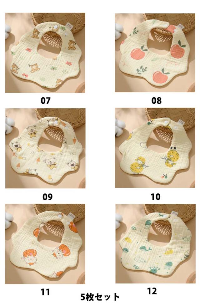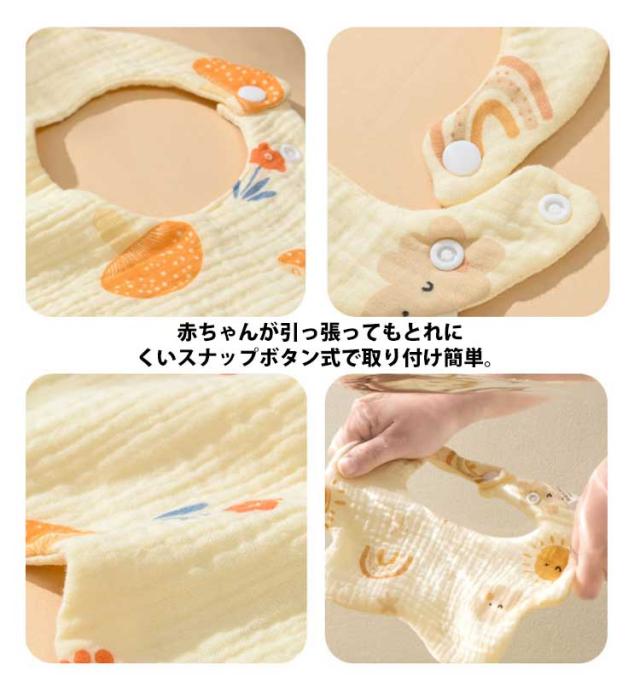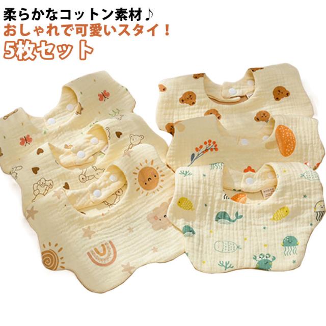 ガーゼ スタイ 5枚セット よだれカバー よだれ掛け よだれかけ スタイセット スナップボタン 赤ちゃん ベビー 男の子 女の子 通気性 吸収性 柔らかい 綿 コットン 保育園 吸水性 出産祝い 可愛い ギフト プレゼント 送料無料