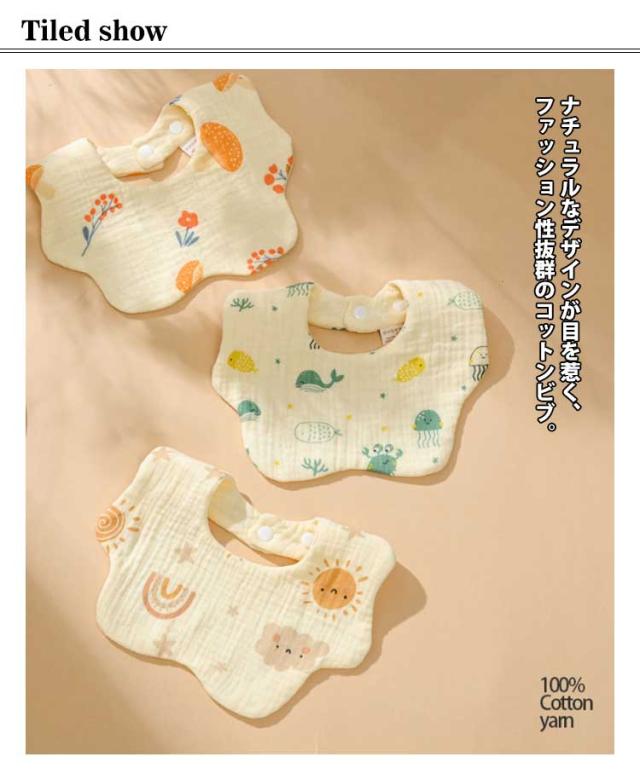 | 柔らかなコットン素材♪おしゃれで可愛いスタイ! ナチュラルなデザインが目を惹く、ファッション性抜群のコットンビブ。 いつものお洋服のコーデのアクセントに最適! よだれ掛けにもお食事用エプロンにもお使いいただけます。 コンパクトに持ち運べるので、外出時にカバンに入れても場所を取りません。 赤ちゃんが引っ張ってもとれにくいスナップボタン式で取り付け簡単。 柔らかなコットン生地を使用しているので、デリケートな赤ちゃんの肌にも安心です。 出産祝いなどのギフト、誕生日などのプレゼントにいかがでしょうか? | |