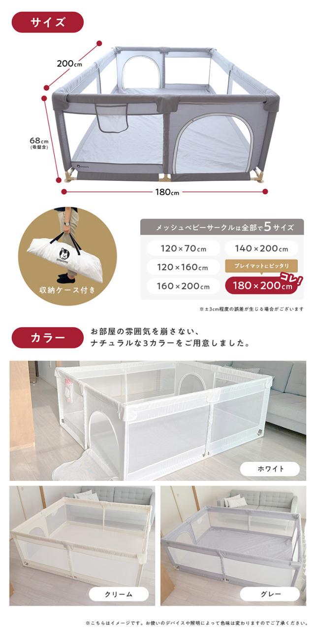 popomi ポポミ メッシュベビーサークル ベビーサークル メッシュ 折りたたみ 簡単 持ち運び ハイタイプ プレイヤード ベビーゲート ネット 赤ちゃん ベビー 子供 キッズ 大きい 180×200cm(代引不可)【送料無料】