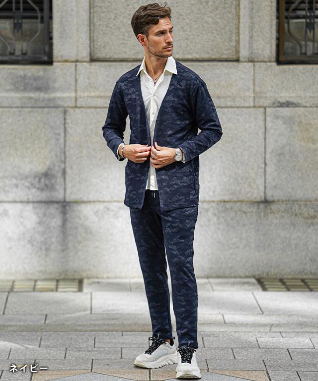 セットアップ メンズ ブランド カーディガン テーパードパンツ 上下セット メンズ きれいめ 薄手 セットアップ メンズ 迷彩 紺 黒 ストレッチ スリム ブラック ネイビー 春 春服 春物 おしゃれ ちょいワル joker ジョーカー スポーティ 夏新作 新作