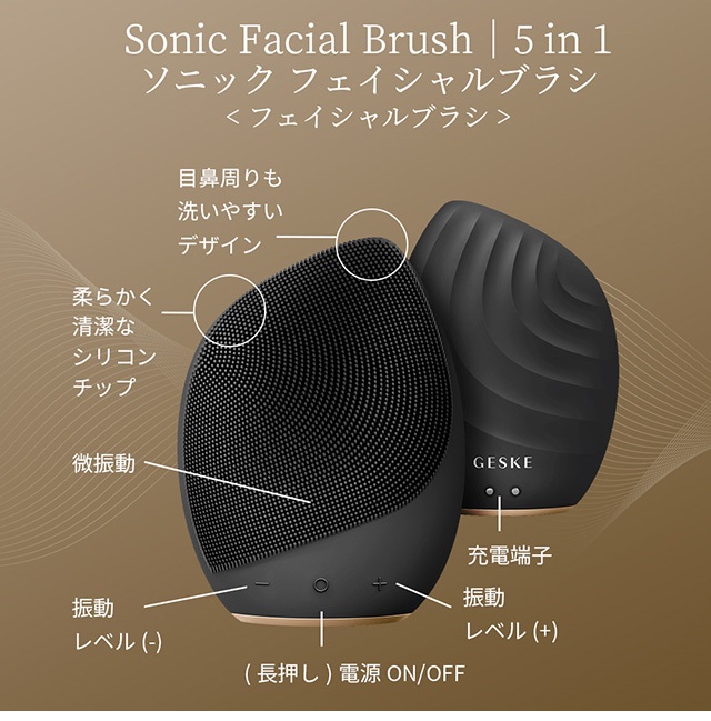 【動画あり】GESKE ゲスケ Sonic Facial Brush ソニック フェイシャルブラシ GK000010GY01 フェイスケア 美顔器 顔