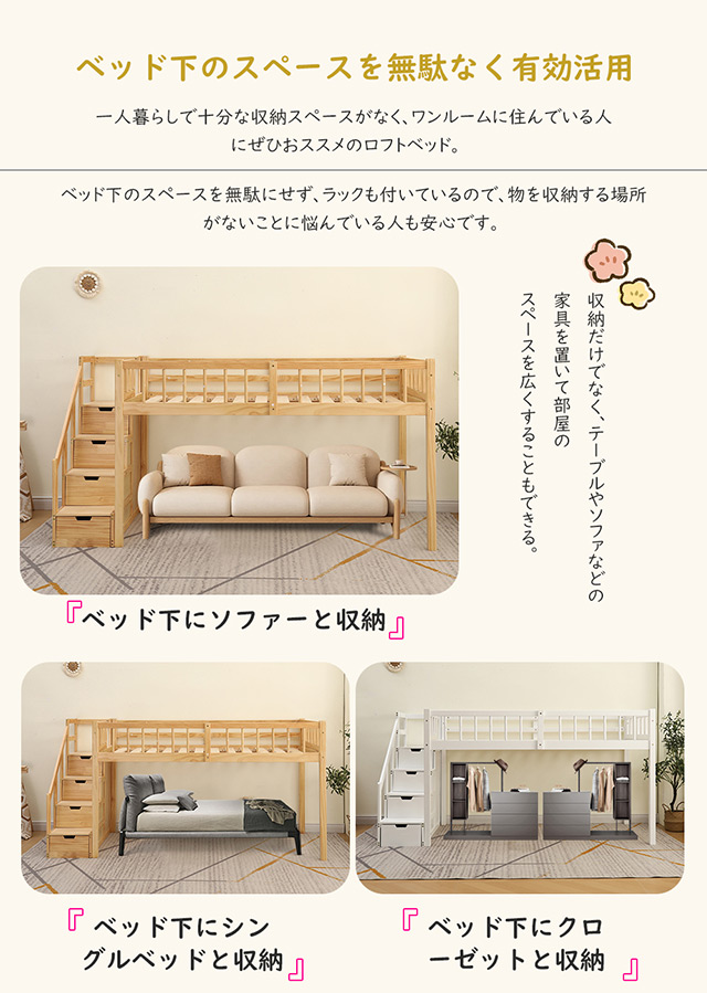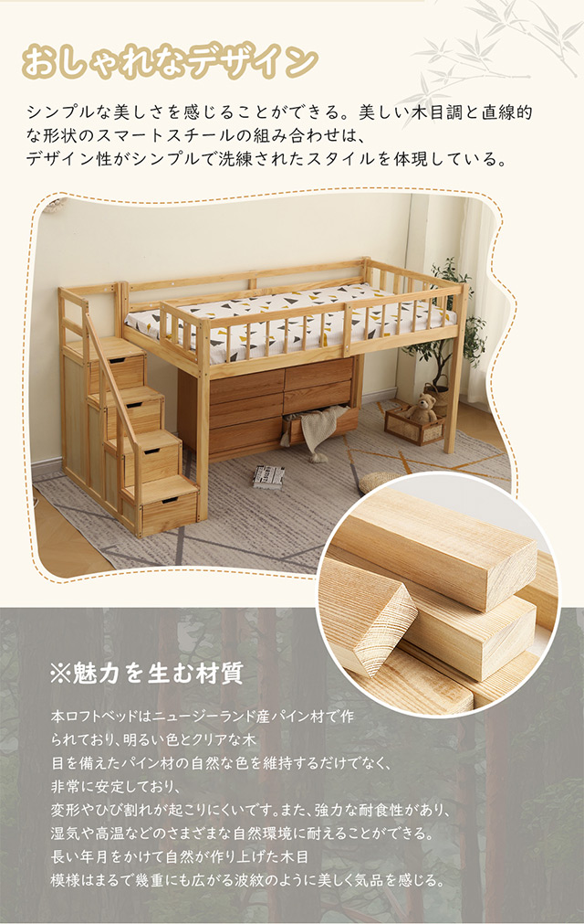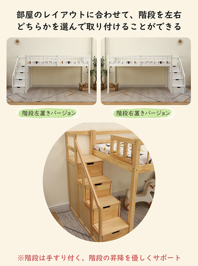 「クーポン配布中」ロフトベッド 木製 ベッド 階段付き システムベット 耐震ベッド シングル 子供ベッド 二段ベッド 子供部屋二段ベッド シングルロフトベッド ロータイプ ウッド 収納フック棚付き 北欧風 新生活応援