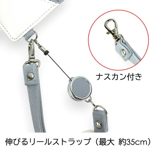 伸びるリールストラップ付きなのでバッグにつけたままで改札も楽々!