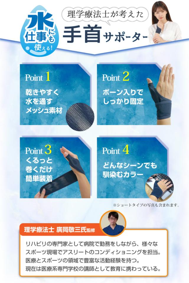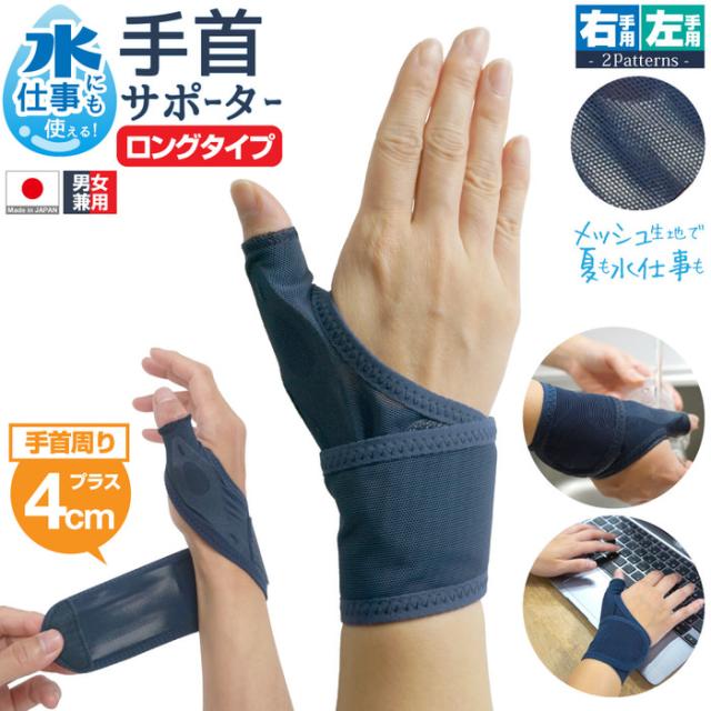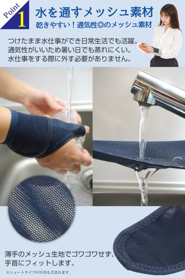 水仕事にも使えるメッシュの手首サポーターロング | 手首サポーター ホールド 手首用 親指の付け根 固定 洗える 女性 男性 リストラップ おすすめ 右手 左手 保護 薄手 薄い
