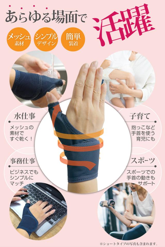 水仕事にも使えるメッシュの手首サポーターロング | 手首サポーター ホールド 手首用 親指の付け根 固定 洗える 女性 男性 薄手 薄い