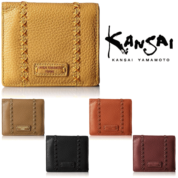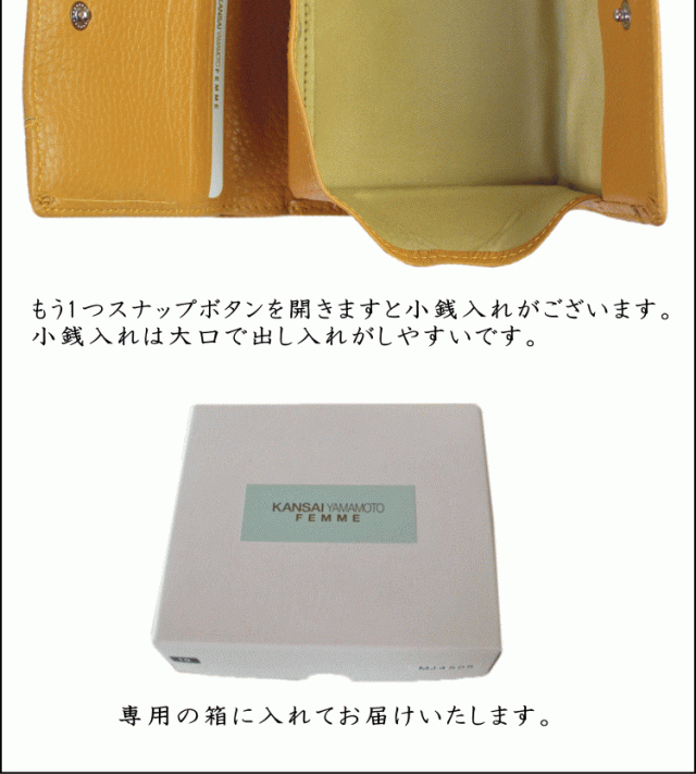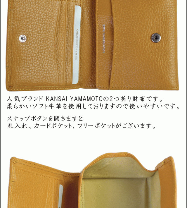 財布 KANSAI YAMAMOTO 山本寛斎 ヤマモトカンサイ 財布 レディース 二つ折り 本革 小銭入れ付き MJ4501 イエロー色 ベージュ色 ブラック色 オレンジ色 ワイン色
