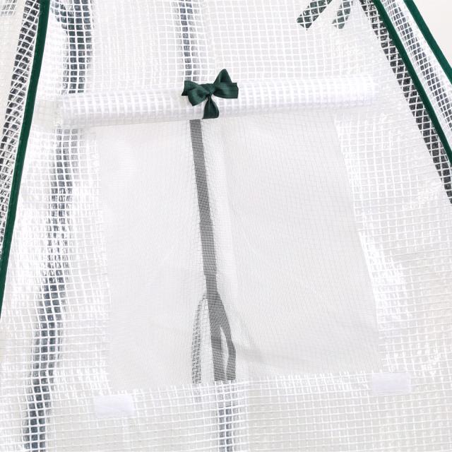 温室内の温度上昇が気になる時には、背面のメッシュ窓を巻き上げ、風を入れながら温度調節が出来ます。