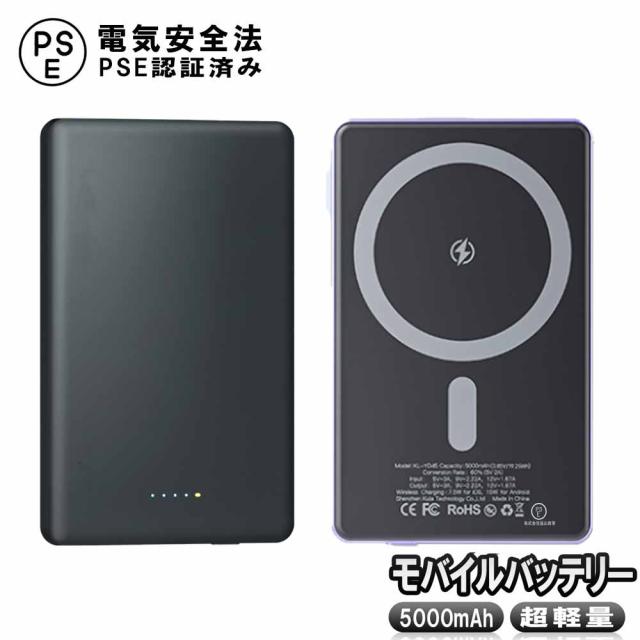 【送料無料】Magsafe 対応 モバイルバッテリー 軽量 8.6MM薄型 マグネット式ワイヤレス充電 PSE認証済み LED残量表示