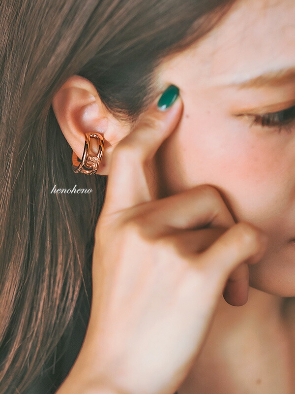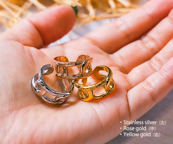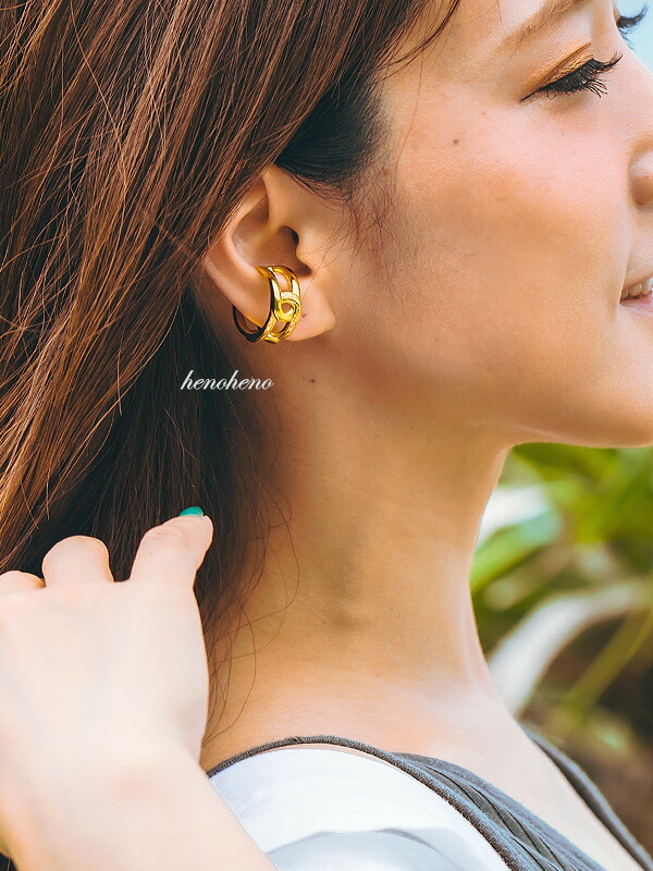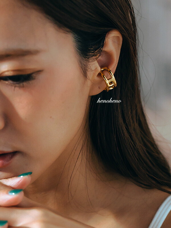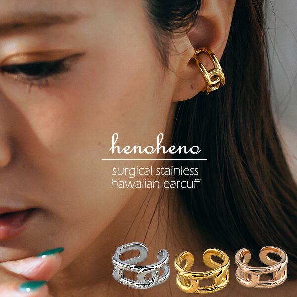ハワイアンジュエリー イヤーカフ 金属アレルギー対応 チェーンモチーフ 大ぶり 大きめ カフリング 高見え レディース メンズ 2way 耳 挟む 軟骨 リング 指輪 サージカルステンレス イヤーカフス イヤカフ ウェアリング イヤリング henoheno