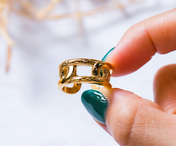 | チェーンをモチーフにしたハワイアン2wayイヤーカフ。 しっかりとした重厚感のある見た目よりも軽やかな装着感。 コロンとしたフォルムで着けてみると思いのほか上品で馴染む。 また、12〜13号くらいのリングとしてもお使いいただける カフリング仕様で、手元では華やかで贅沢な印象に。 少し太めなチェーンモチーフのデザインは ハンサムなイメージもあり、ユニセックスなデザインで メンズにもおススメ。 二人だけのペアアイテムとしても...。 両耳で着ければよりゴージャスな雰囲気で、 パーティーシーンなどにも活躍しくれそう。 気分によってイヤカフにしてみたりリングにしてみたり、 違ったニュアンスをお楽しみいただけます。 | ||||