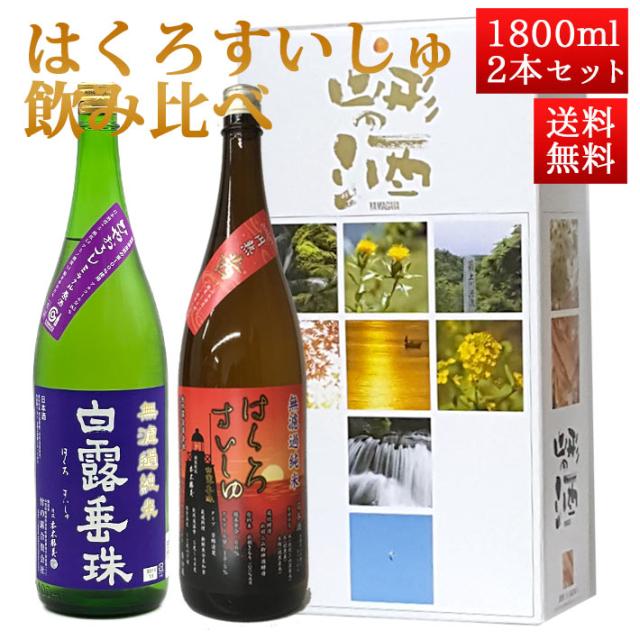 日本酒 飲み比べセット はくろすいしゅ 1800ml 2本セット ひやおろし 、無濾過純米 円熟 茜(ruby) 白露垂珠 山形 竹の露