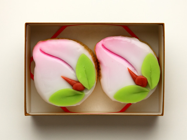 長崎の縁起物のお菓子。甘さが程よいと好評の梅月堂の桃カステラ。
