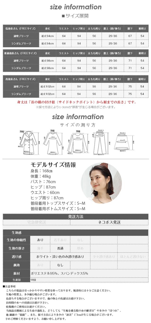 - ウエストがワンサイズなので履けるのか心配でしたが大丈夫でした。丈がなかなか合うのがなくて、試着出来ないのが不安でしたがこちらの商品はバッチリでした。