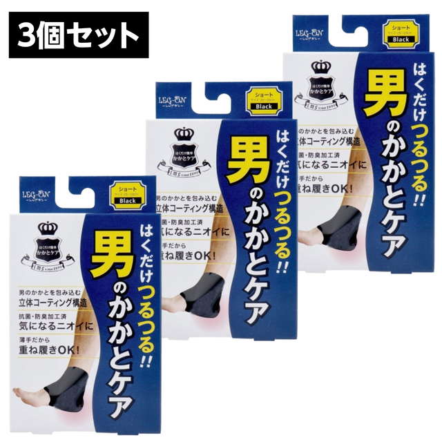 かかとケア 角質ケア かかと靴下 サポーター パッド ソックス 男性用 メンズ 保湿 ガサガサ ひび割れ 抗菌 防臭加工 黒 2枚組 1足分 3セット【メール便/送料無料】