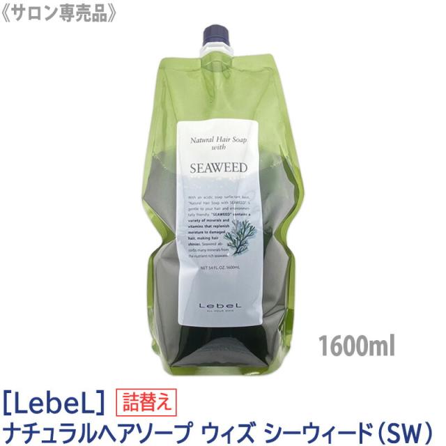 送料無料 [LebeL] ルベル ナチュラル ヘアソープ ウィズ SW (シーウィード) シャンプー 1600ml サロン専売品 髪 肌 ヘアケア 植物由来 天然成分 詰替用