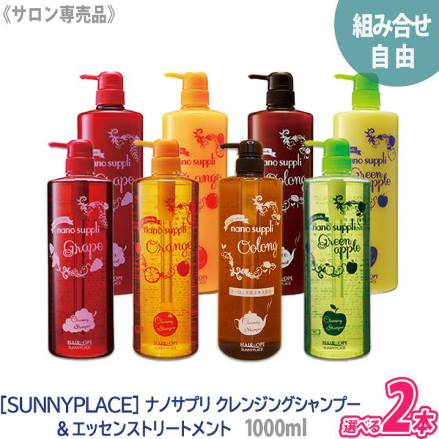 送料無料【組み合わせ自由/2本セット】[SUNNYPLACE]サニープレイス ナノサプリ クレンジングシャンプー & エッセンストリートメント 1000ml サロン専売品 アップル グレープ オレンジ ウーロン ポンプ 本体 フリーチョイス