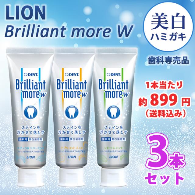 送料無料 3本セット[LION] ライオン ブリリアントモア ダブル 90g 歯みがき粉 ステイン除去 ホワイトニング 美白 歯科専売品 Brilliant more W 医薬部外品 【 送料込み 1本当たり899円 !!】