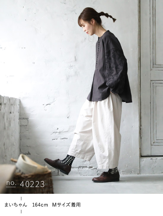 【ついに再入荷!】 はちみつ堂 味わい刺繍ブラウス レディース プルオーバー ノーカラー バンドカラー パフスリーブ トップス