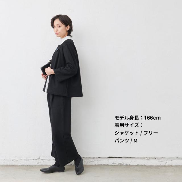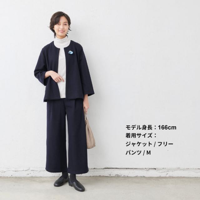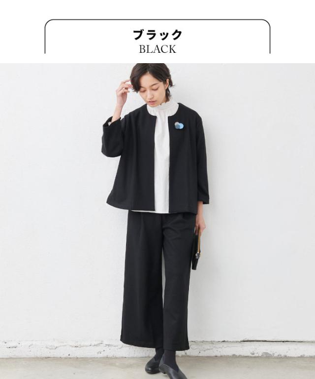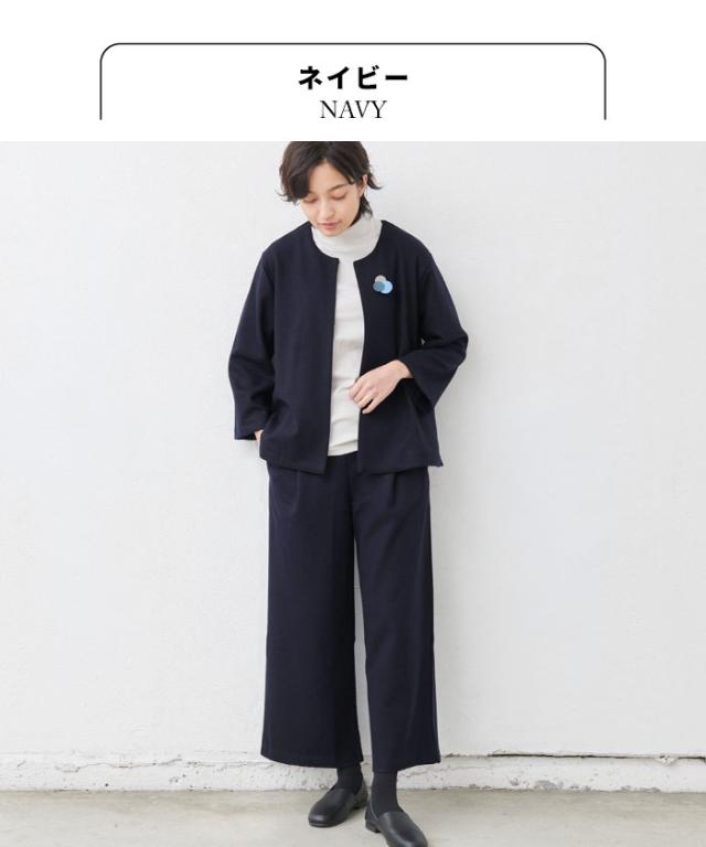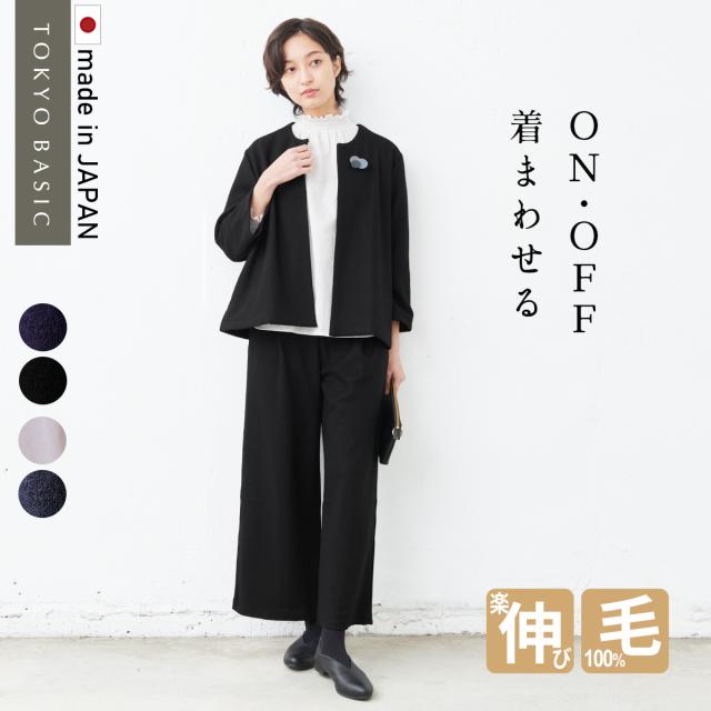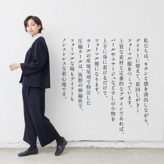 圧縮ウール100% こなれ ジャケット + ワイド パンツ 2点セット 日本製 / 卒業式 セットアップ 40代 入学式 ママスーツ 30代 50代 卒業式 スーツ 母 40代 体型カバー フォーマル セレモニースーツ 黒 紺 結婚式 冠婚葬祭 暖かい