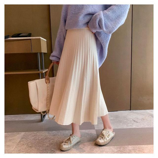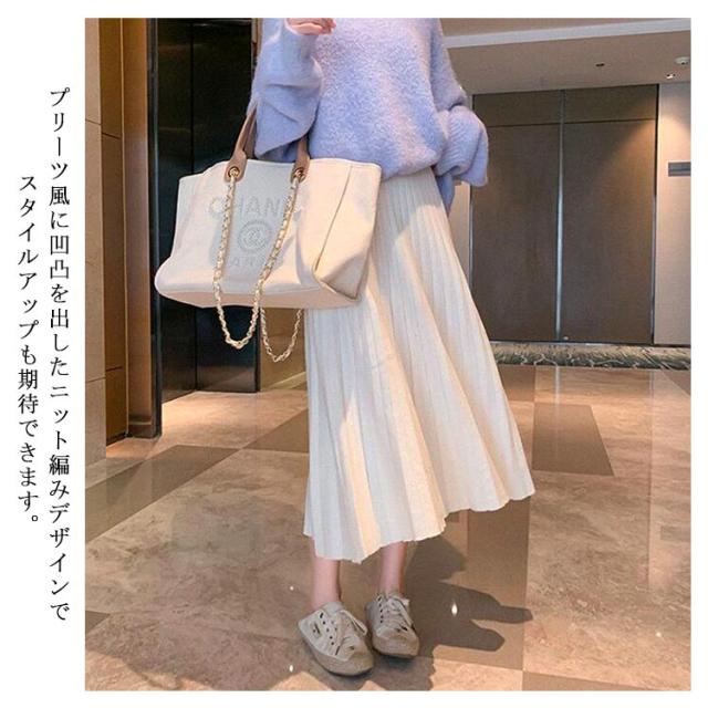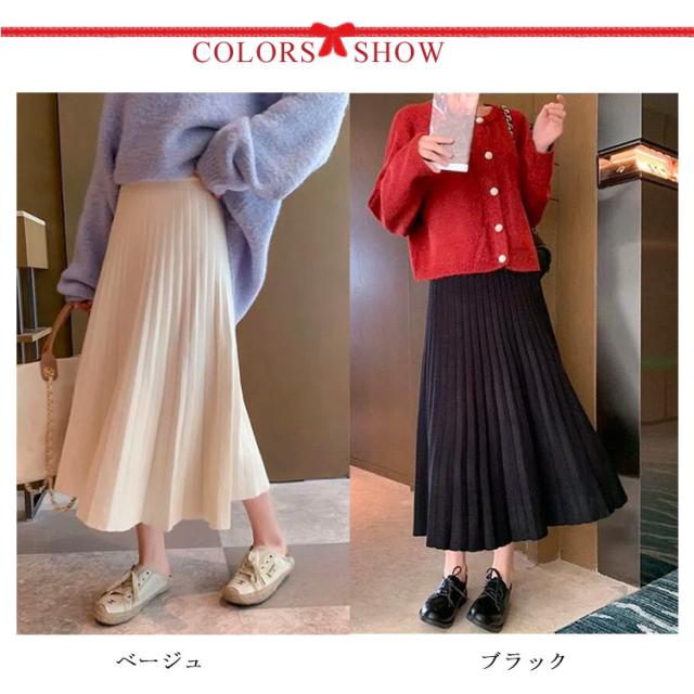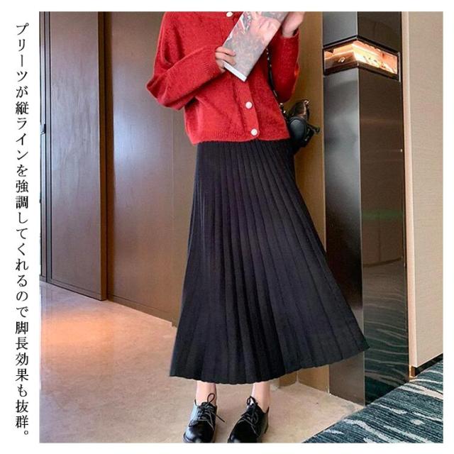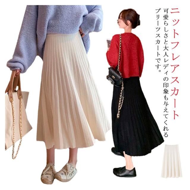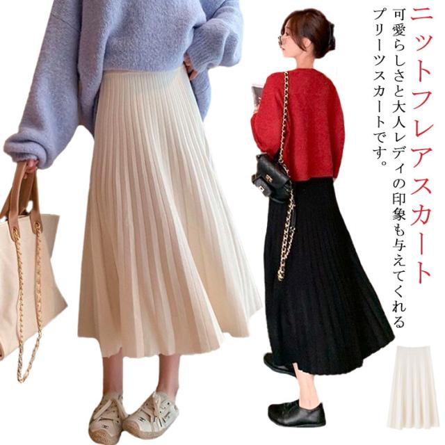 通勤 秋冬 レディース ミモレ丈 カジュアル ニットスカート プリーツスカート Aライン ウエストゴム ボトムス フレアスカート 冬 シンプル 大人かわいい 楽ちん 秋 きれいめ 上品 オフィス フェミニン ロング丈