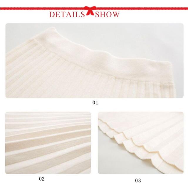 | 可愛らしさと大人レディの印象も与えてくれるプリーツスカートです。 プリーツ風に凹凸を出したニット編みデザインでスタイルアップも期待できます。 フレアなシルエットなので、ボディラインを気にせずに着用できます。 プリーツが縦ラインを強調してくれるので脚長効果も抜群。 ウエストはゴムなのでトップスのインアウトがしやすく、履き心地も抜群。 | |