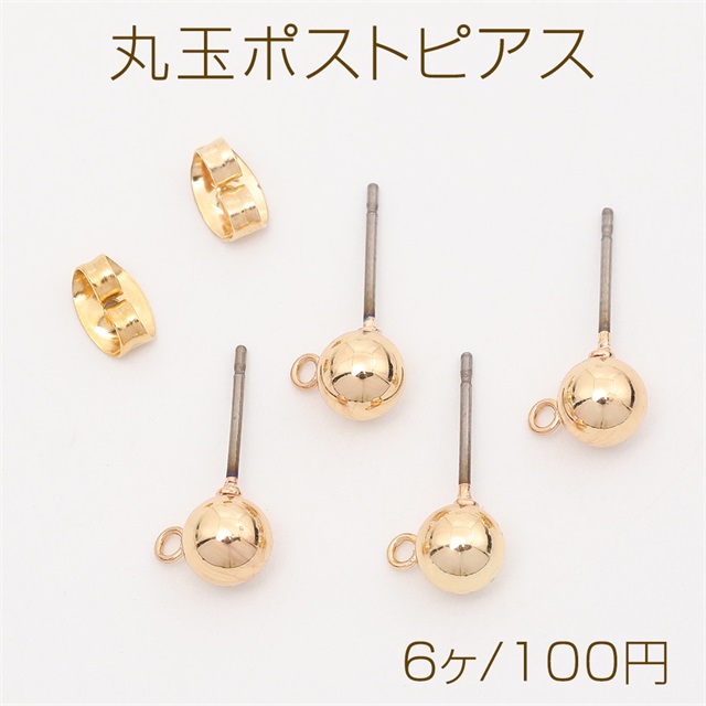 丸玉ポストピアス カン付きぶら下がりタイプ チタン製針 防アレルギー ゴールド 6mm(6ヶ)
