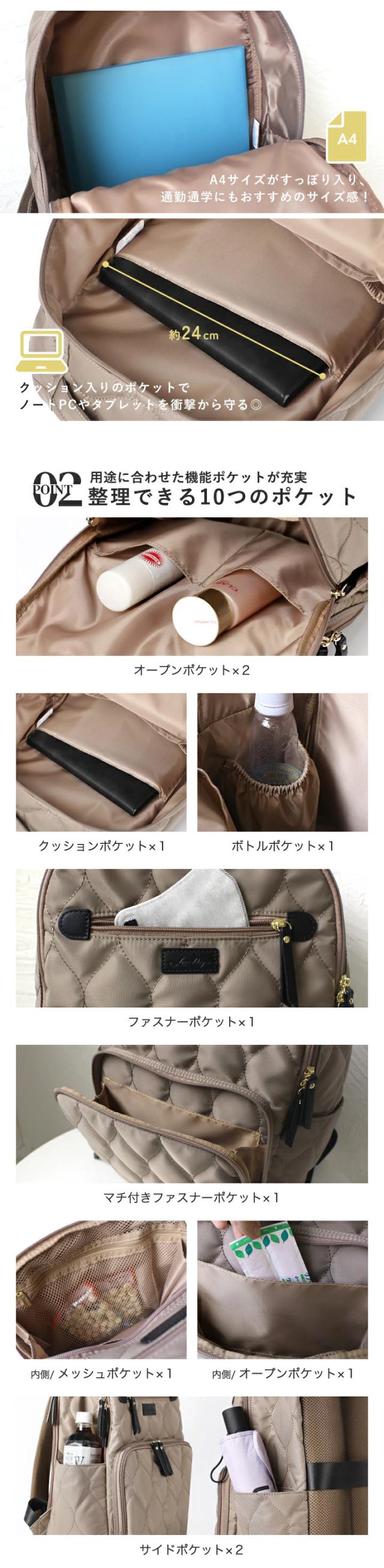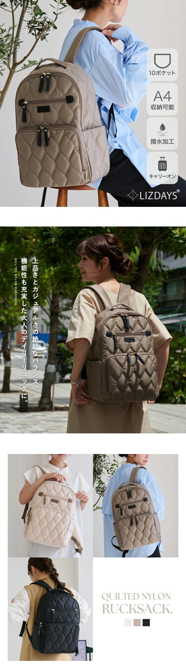 リュック 大容量 レディース マザーズバッグ バックパック リュックサック ナイロン 撥水 キルティング 抗菌防臭 おしゃれ LIZDAYS リズデイズ 大人 ママバッグ かばん マザーズリュック ベビーカー ストラップ コイルストラップ 多収納 通勤 ママラク urban【lz-72503r】