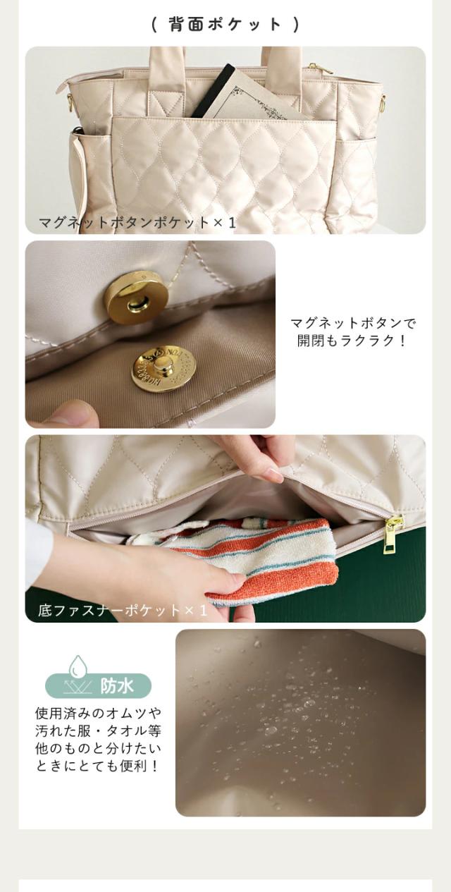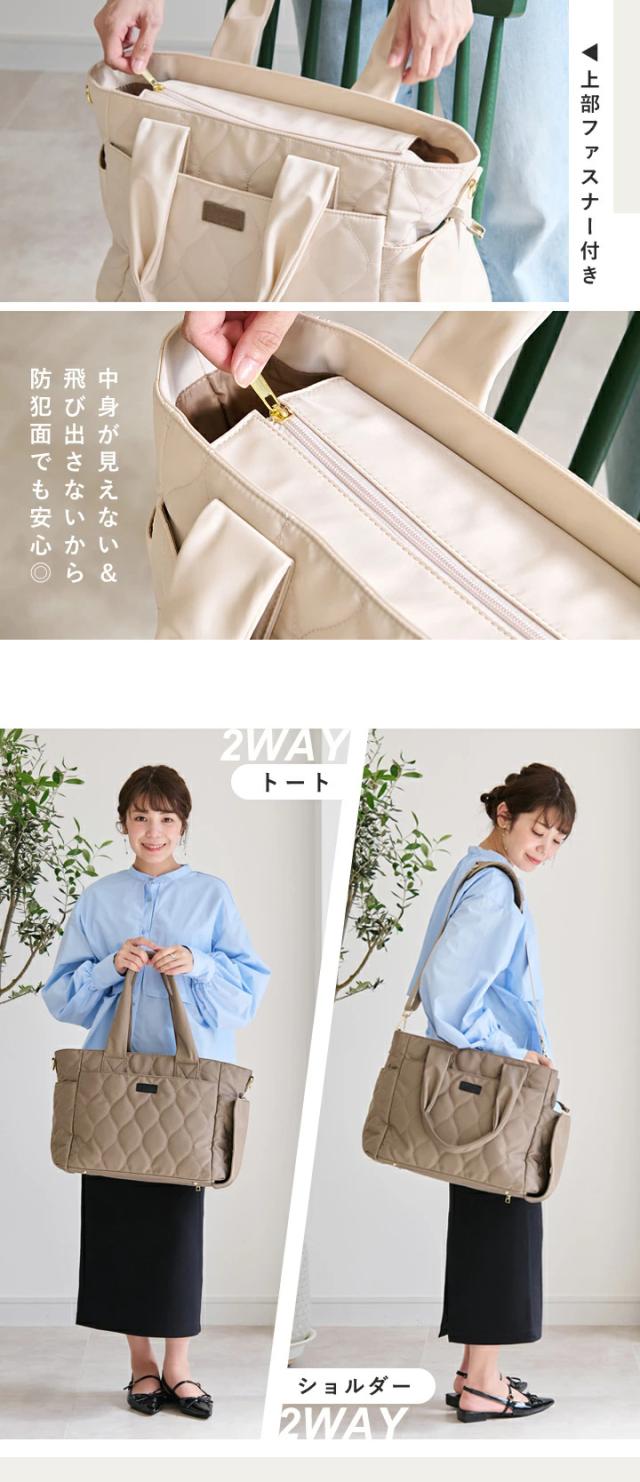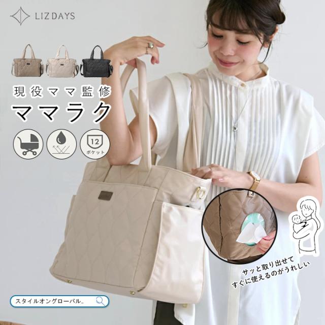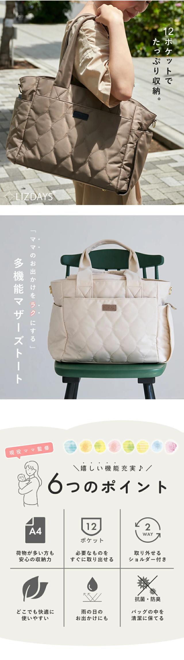 トートバッグ 大容量 レディース ショルダーバッグ マザーズバッグ 軽量 斜めがけ ナイロン 撥水 おしゃれ LIZDAYS リズデイズ 大人 トート キルティング かばん ママバッグ 旅行 通勤 ポケット たくさん シンプル 抗菌 防臭 ママラク【lz-51503r】