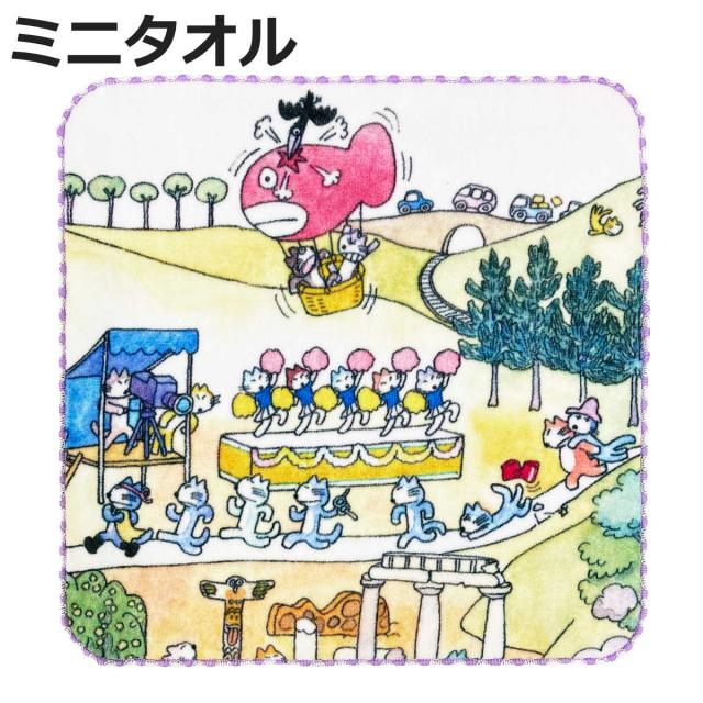 ミニタオル 25×25cm 11ぴきのねこ マラソン大会 ( タオル 綿100 汗拭きタオル 手拭き タオルハンカチ たおる 絵本 馬場のぼる 25×25 バス用品 デイリータオル バスグッズ ねこ )