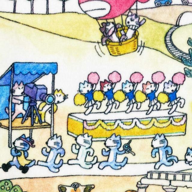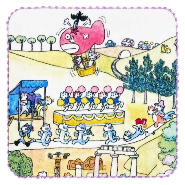 たくさんの人に長く親しまれている人気絵本「11ぴきのねこマラソン大会」のデザインのミニタオルです。シャーリング生地で柔らかくすべすべとした肌触りです。折りたたむと子どものポケットにも入るサイズなので通園・通学にもおすすめのアイテムです。