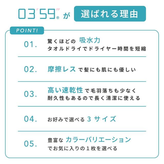 高性能なマイクロファイバー素材を使用し、濡れた髪や体の水分を素早く吸収する超吸水・速乾に優れている。