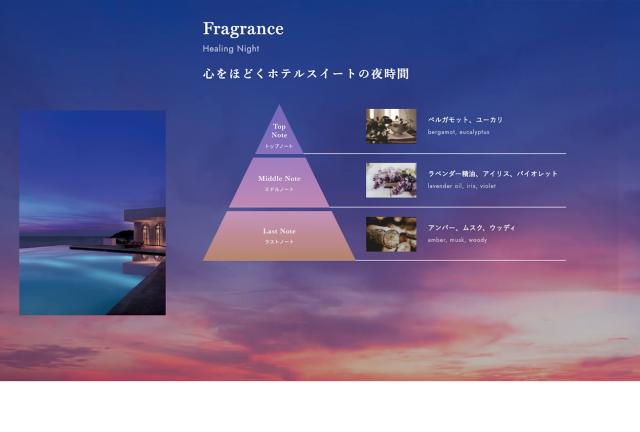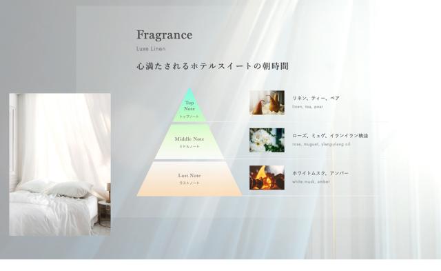 ラグジュアリーなホテル空間で感じる高揚感や解放感を想起させるホテルスイートの香りの世界。