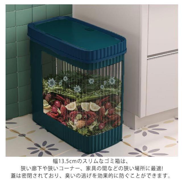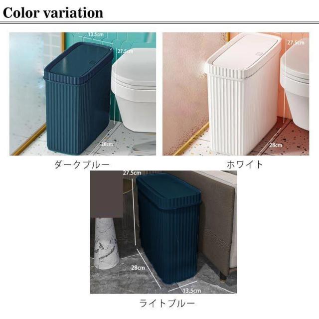 | 狭いコーナー、家具の間などの狭い場所に最適! ちょっとした隙間が統一感ある収納スペースに早変わり! 蓋のボタンを押すだけで開閉できるので、ゴミを捨てることに便利です。 収納はできるだけ目立たないよう、バレないようにしたいもの。 ふた付きなので、小さなお子様やペットがいるご家庭のいたずら防止にも。 上下に分離なので、ゴミ袋を取り外しやすくて、袋が割れません。 幅13.5cmのスリムなゴミ箱は、狭い廊下や狭いコーナー、家具の間などの狭い場所に最適! 蓋は密閉されており、臭いの逃げを効果的に防ぐことができます。 居間、部屋、バスルーム、トイレ、キッチン、オフィスなどにご利用いただけます。 | |
