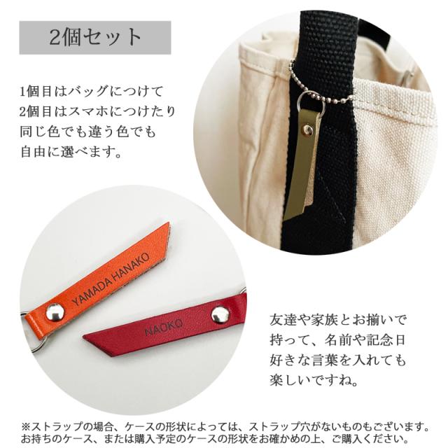 栃木レザー タグ 2個セット キーホルダー ストラップ 本革 名入れ対応 ハンドメイド レザークラフト スマホストラップ 携帯ストラップ 送料無料 即納